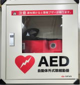 | 万が一突然心停止状態に陥った場合の救命活動に備え、現場に居合わせた一般の人でも簡単に使用できるよう管理棟事務室に設置してあります |
